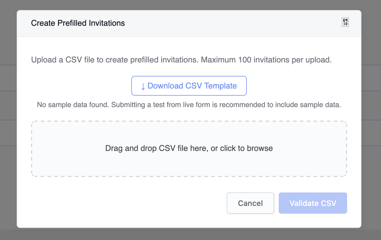 - Téléchargez un CSV pour créer des invitations uniques et pré-remplies, sans saisie manuelle nécessaire.