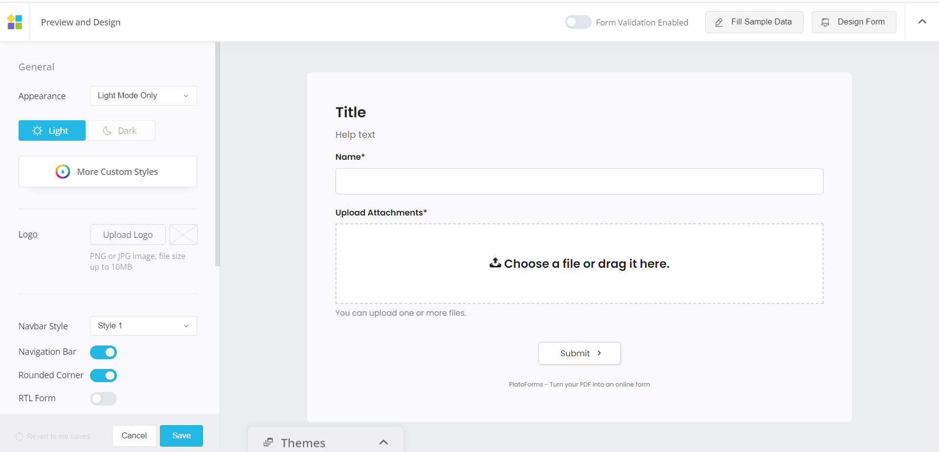 Unlock more design options, an intuitive interface, and effortless theme switching for stunning web PDF forms. Transform your form’s look with a single click.