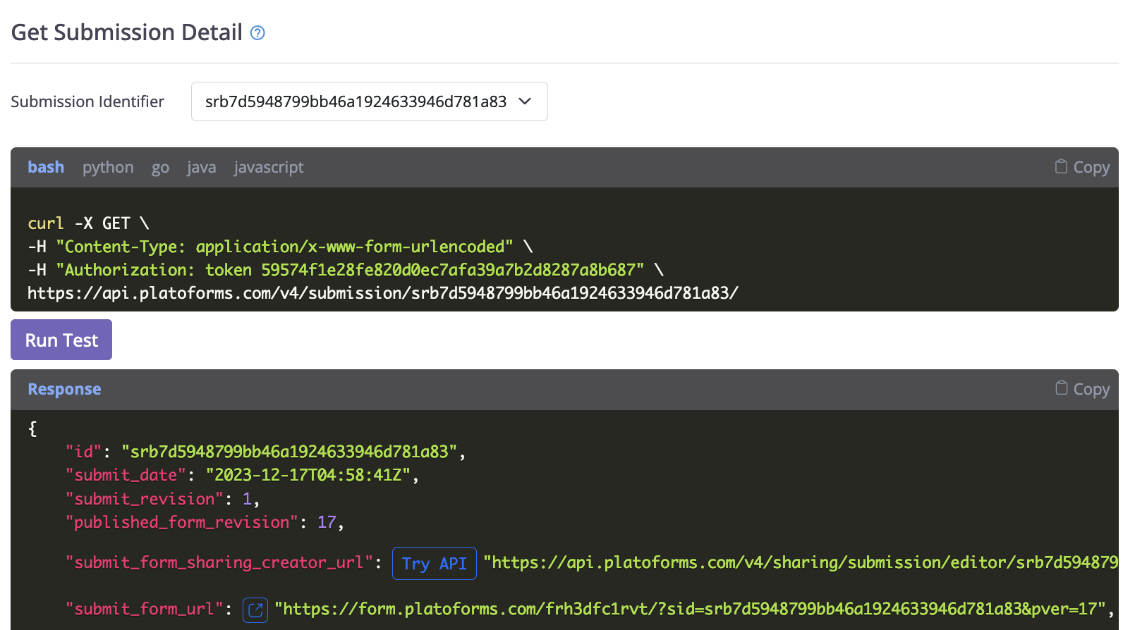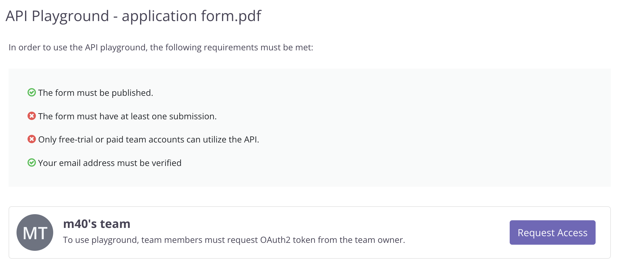 The API Playground makes it easy to try our API without writing any code. You can test real API requests using your actual form data — all in one place.