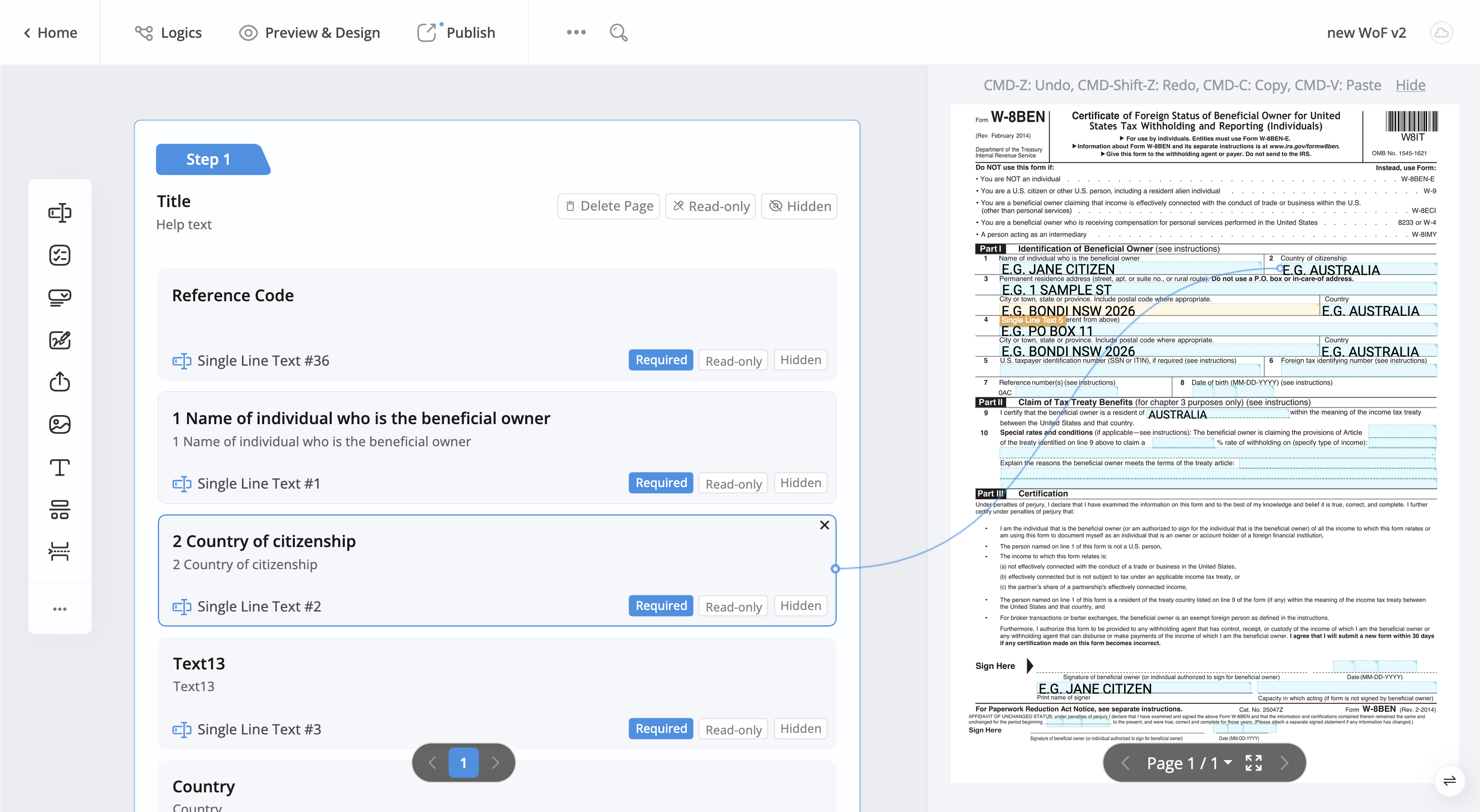 🔗 Field–PDF mapping view: Left-side fields now visually connect to their corresponding PDF widgets, making it easier to understand and manage field mapping.