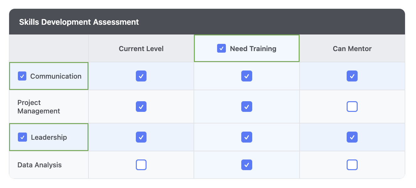 - Column select: Let users select an entire column at once — ideal for category or feature selections.