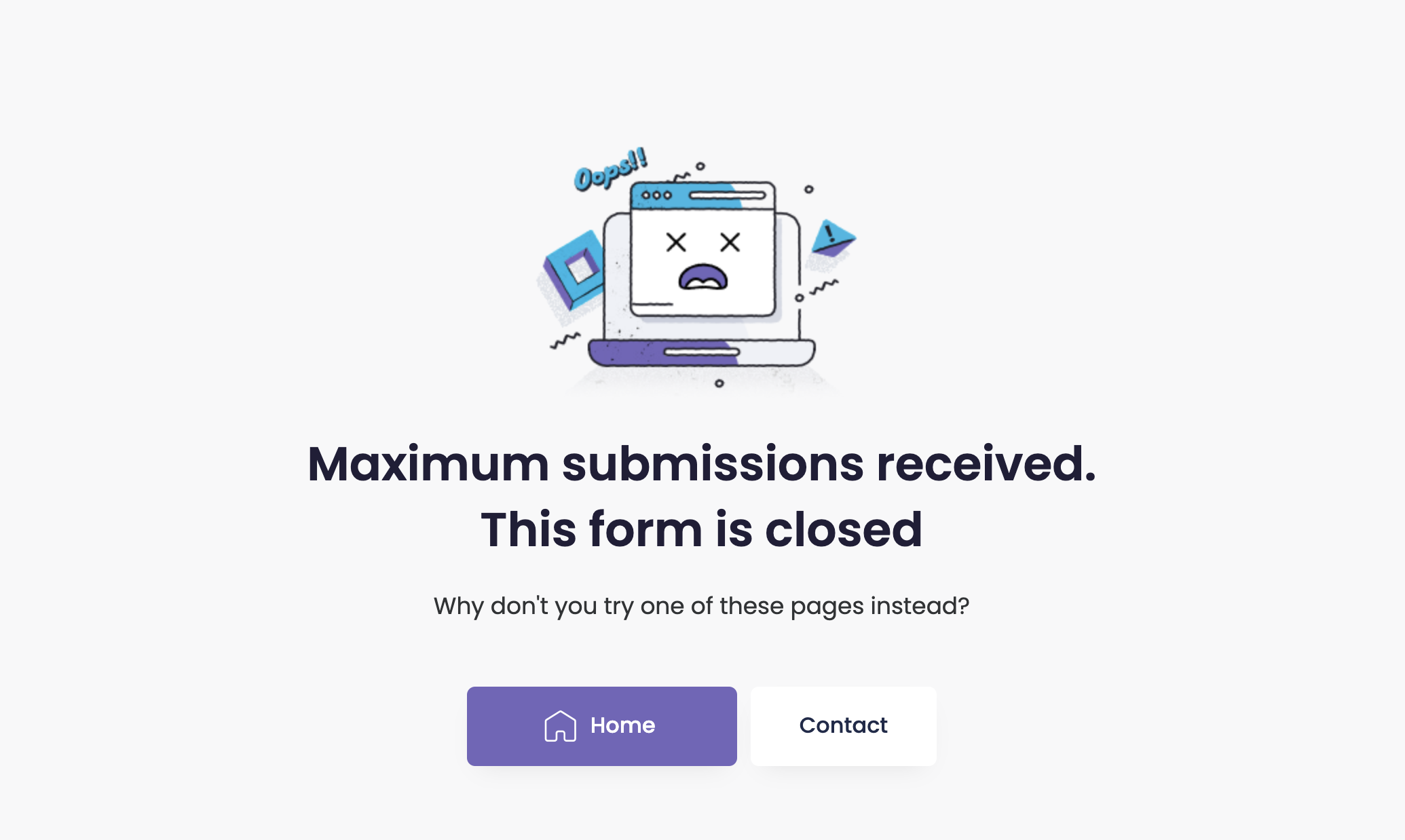 When a form reaches its submission limit (set under the General tab in Form Settings), it now: