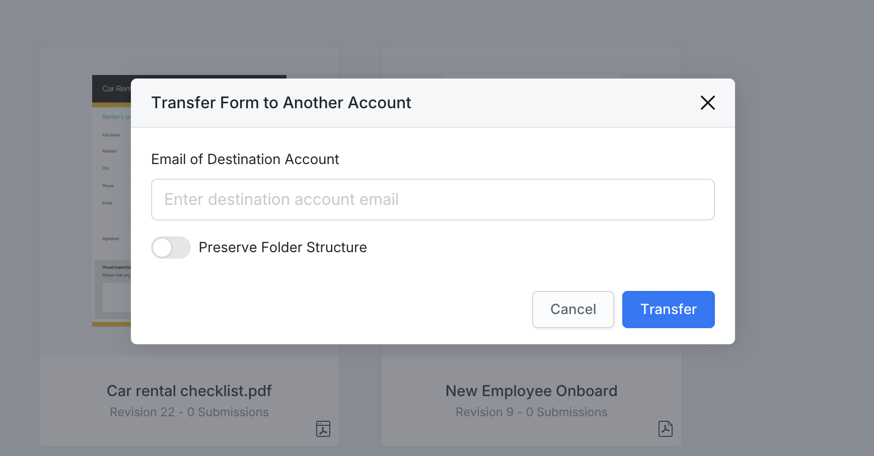 Bonus: You can choose to Preserve Folder Structure. When enabled, the form will be placed inside a newly created folder with the same name in the recipient’s account.